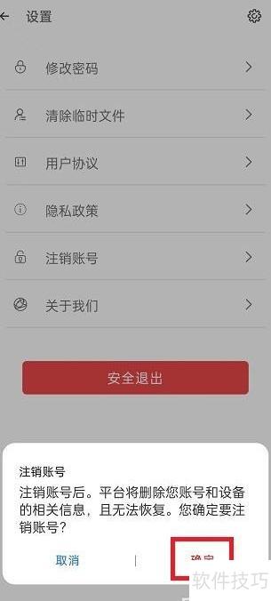 4、 进入账号注销页面,点击确认按钮完成注销操作。