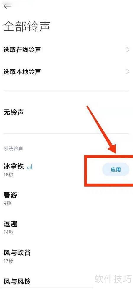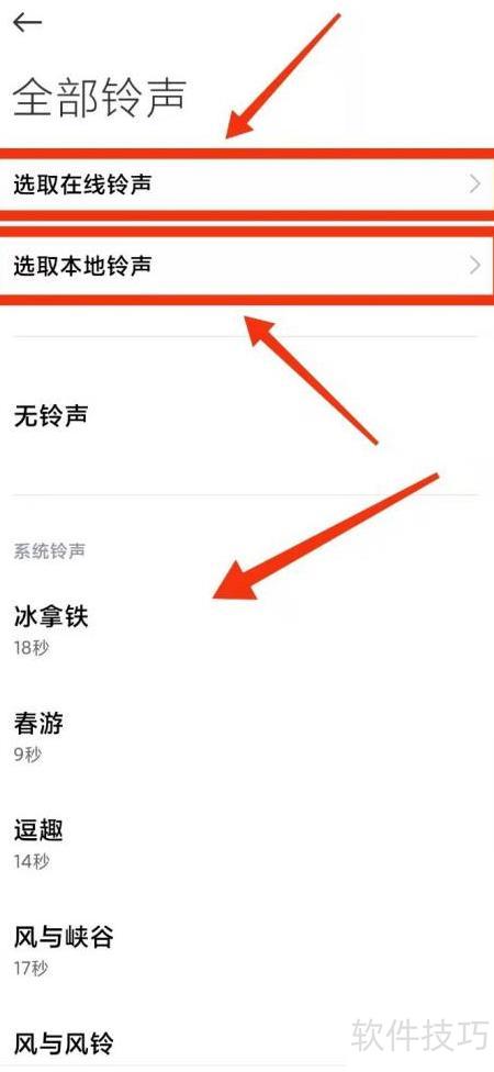 5、 可选择在线铃声、本地铃声、无铃声或系统铃声,根据个人喜好设置即可。