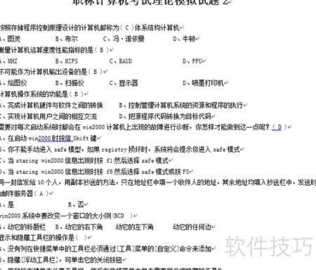 6、 这些题目必须逐一掌握,即便不能完全记住,也要有清晰的印象,知道大致该选哪个选项,这属于理论部分的内容。至于上机操作题,考查范围较为集中,主要涉及基础功能的操作。例如在Word中调整字体、设置段落格式、实现首字下沉等,考试时只需在对应的功能区找到相应选项进行设置即可完成。