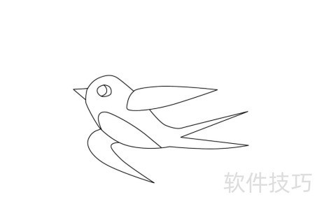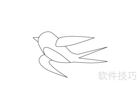 2、 画出小燕子的身体与尾巴的简笔形状轮廓