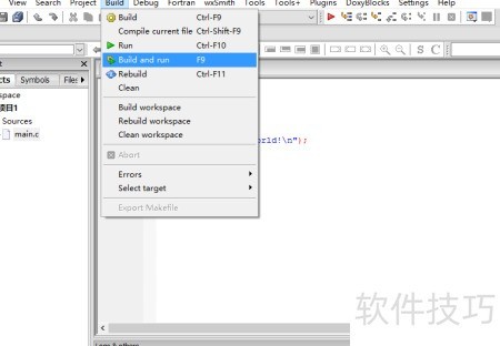 6、 打开文件夹,输入待编译代码,点击构建并运行按钮,即可完成编译与执行操作。