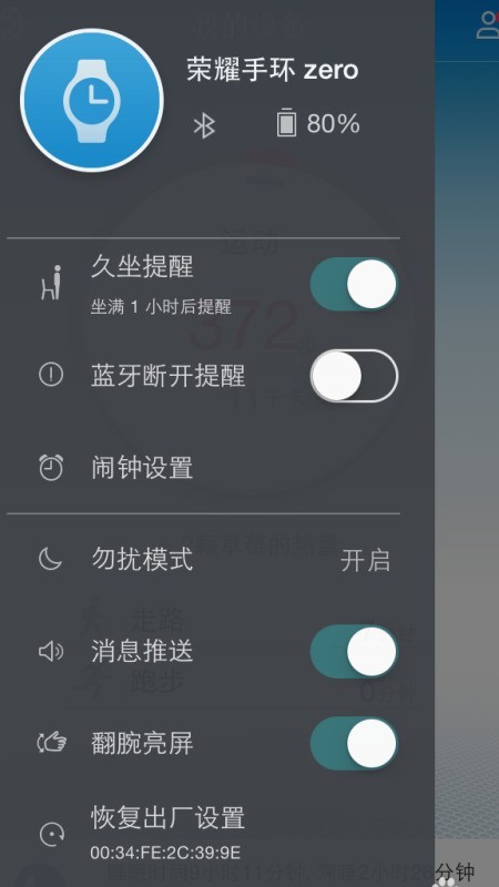 3、 打开手机中的华为穿戴应用,开启蓝牙功能(可通过下拉通知栏点击蓝牙图标启用),确保手机与手环距离不超过2米,保持连接稳定。