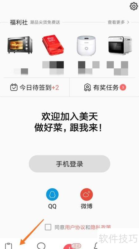 1、 打开美食天下,点击底部菜谱按钮。