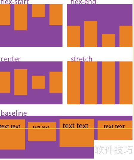 34、 flex-start:元素紧贴交叉轴起始位置对齐。