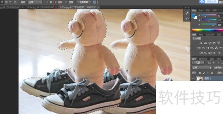 2、 用快速选择工具选取宝宝及鞋子区域