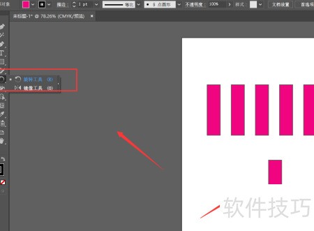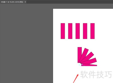 4、 选定初始方向后,按Ctrl+D多次复制,即可生成连续重复的图形,效果所示。
