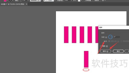 6、 按住Alt键并点击选定位置,设定旋转中心点,此时将弹出旋转设置面板,调整所需旋转角度,最后完成复制操作。