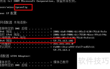 2、 输入ipconfig命令可查询设备的IP地址信息。