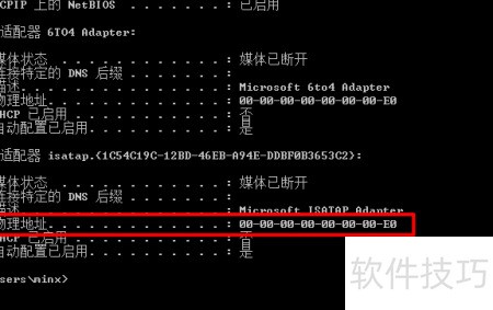 3、 输入ipconfig -all命令可查看计算机的MAC地址及完整的网络配置详情。