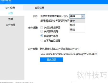 4、 在京麦登录后,可通过咚咚设置在线状态,操作方法见下图。