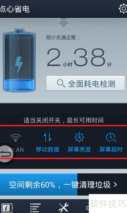 5、 可暂时关闭一些不常用的功能以节省电量。如无WiFi环境时关闭无线网络,无需上网时停用数据连接;阴天或夜晚调低屏幕亮度,缩短屏幕自动关闭时间,关闭屏幕自动旋转功能,同时禁用蓝牙和NFC等模块,这些操作均有助于延长电池使用时间。