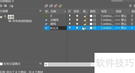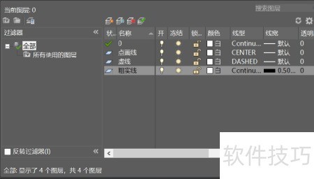 7、 同样修改虚线样式和粗实线宽度,完成后关闭图层管理窗口,新图层即创建成功。