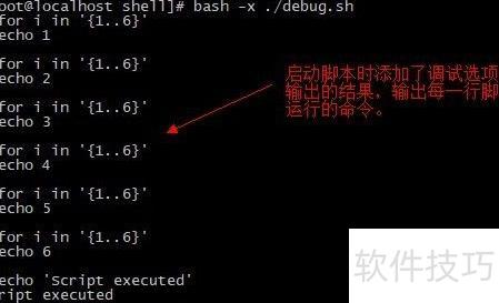 8、 启动脚本时可加入调试参数以进行调试。例如,调试debug.sh文件时,可执行命令:bash -x ./debug.sh 或 sh -x ./debug.sh,从而开启调试模式,逐行显示脚本执行过程,便于排查问题。