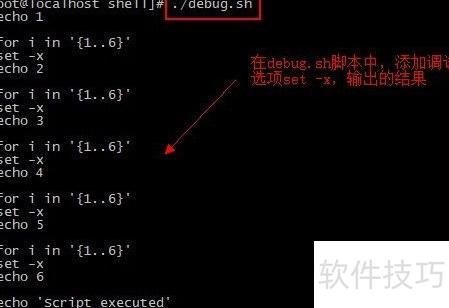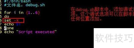 9、 在脚本中加入调试功能,可通过set命令实现。如需启用-x选项,只需在脚本中插入set -x即可。
