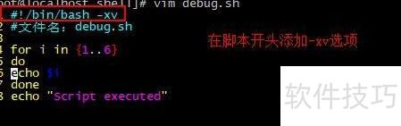12、 可在脚本首行添加-xv选项,如将!/bin/sh替换为!/bin/sh -xv,以简化操作流程。