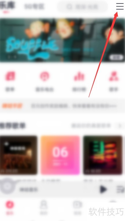 2、 进入咪咕音乐后,点击页面右上角的三条横线图标即可。