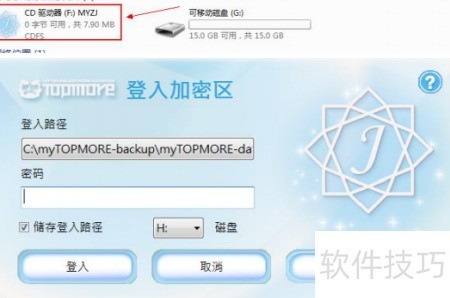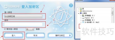 9、 选择加密区域文件夹,输入密码,点击登录即可访问加密内容。