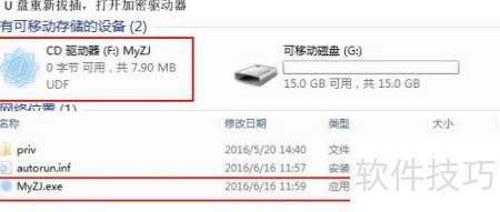 7、 设置完成后,我的电脑将新增一个加密磁盘,需加密的文件可存放其中;每次重新插入U盘后,必须输入密码才能访问该加密文件夹。
