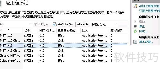 6、 在应用程序池操作面板中点击高级设置选项。