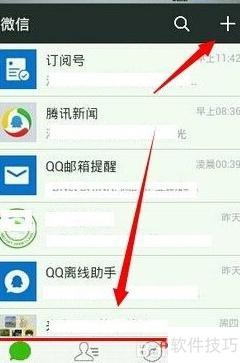 1、 更新后进入微信5.4首页,界面所示,点击右上角+号已无法看到设置选项。
