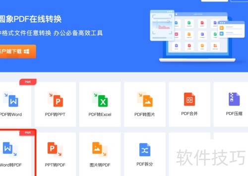 5、 访问小圆象官网,点击功能区的Word转PDF即可开始转换。