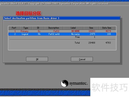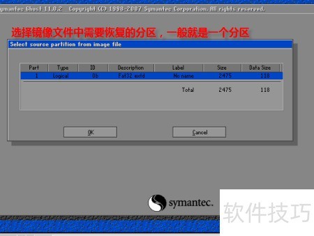 20、 选择镜像文件中需恢复的分区,通常仅有一个,确认后点击OK即可。