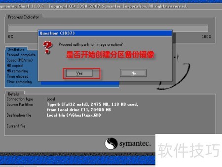 14、 最后确认步骤,询问是否创建分区备份镜像,建议选择是以确保数据安全。