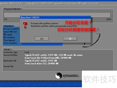 24、 此对话框提示您确认是否恢复数据,目标分区原有数据将被完全覆盖。