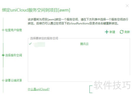 4、 选择需绑定的服务空间,点击下一步完成操作。