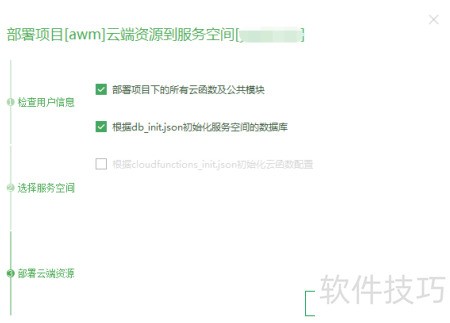 5、 选择需部署的公共模块与云函数,初始化数据库后,点击启动部署即可。