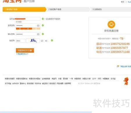 6、 注册淘宝填写资料