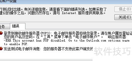1、 该错误提示通常是因为Hotmail邮箱未启用POP服务功能所致。