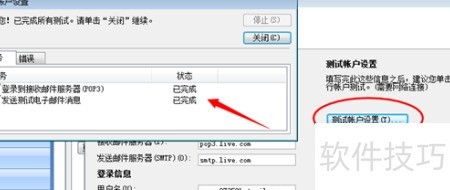 11、 进入测试账号设置,按图示操作,显示测试成功即表示配置无误。