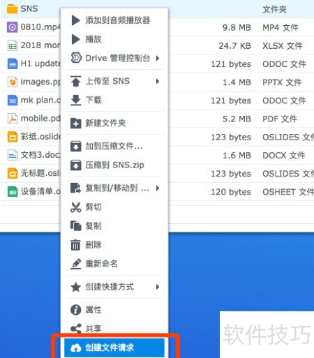 3、 在File Station中,即使对方没有NAS账户,也能轻松收集文件。只需找到目标文件夹,右键点击并选择创建文件请求,即可生成分享链接,方便他人上传所需文件,操作简单高效,适用于各类文件收集场景。