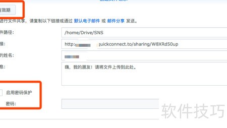 4、 此处将生成一个链接,可设置密码与有效期限,保障文件上传的隐私与安全。
