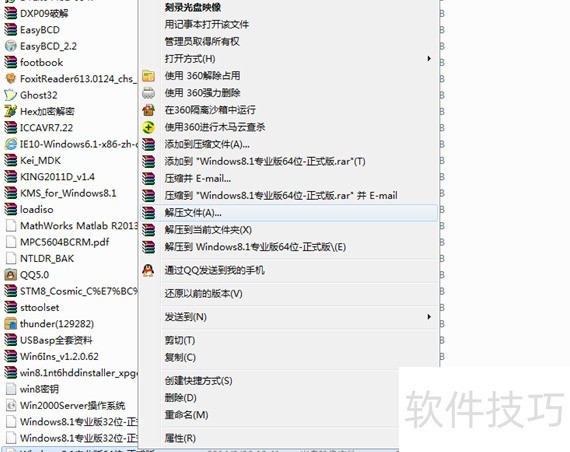 3、 右键点击下载的.iso文件,选择解压,将其解压到非C盘的分区,例如D盘。