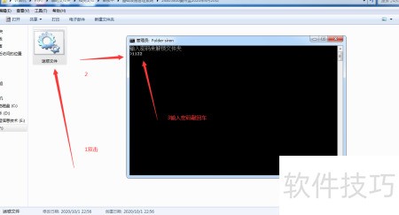 11、 双击批处理器,弹出对话框后输入Y,即可完成加密隐藏操作。