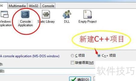 3、 创建新项目,选用C++语言开发控制台应用程序。