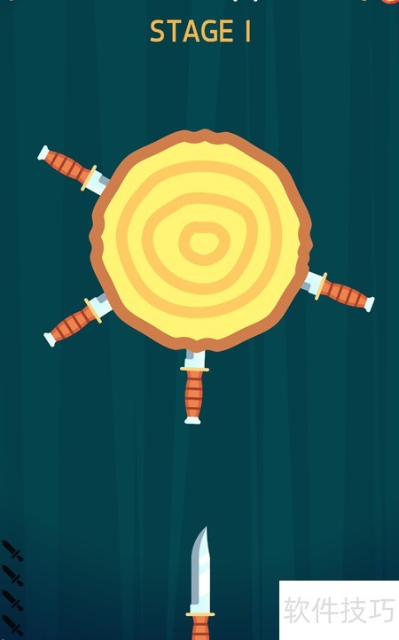 3、 转盘持续转动,速度不定,需将左下角所有飞刀准确投掷到转盘上,所示。