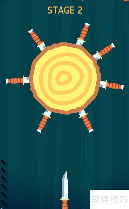 5、 第一关已通过,进入第二关,需将七把飞刀全部投出,转盘速度较前一关更快,具体所示。