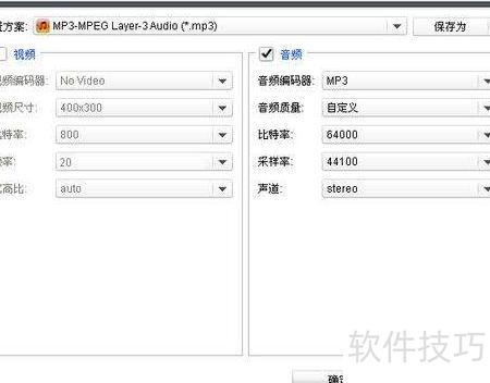 7、 进入高级设置界面后,可调整音频质量、比特率和采样率等参数。比特率与采样率越高,音频文件质量越佳,但文件体积也随之增大。具体设置所示。