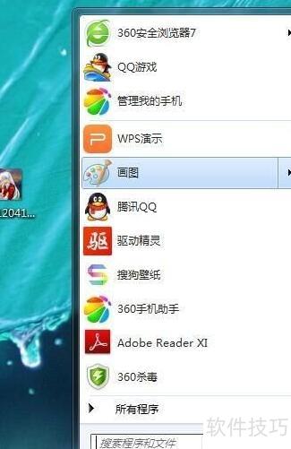1、 启动电脑后,点击开始菜单,查找并打开系统自带的绘图程序。