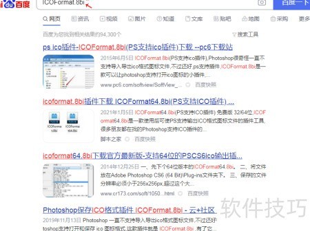 2、 在百度搜索icoformat 8bi插件,下载并解压文件,操作所示。