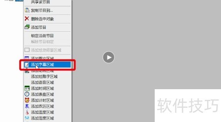 5、 右键点击左侧节目1,选择添加字幕区域。