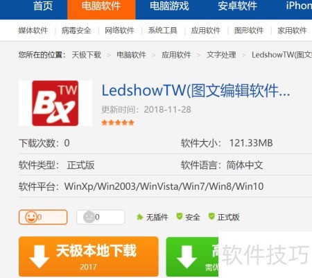 1、 在网上搜索并下载约130M的ledshowtw2017软件,完成后安装并运行该程序即可使用。