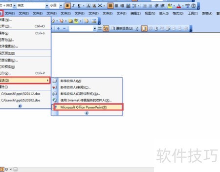 2、 接着在菜单栏中选择文件,找到发送选项,随后点击PowerPoint进行操作。