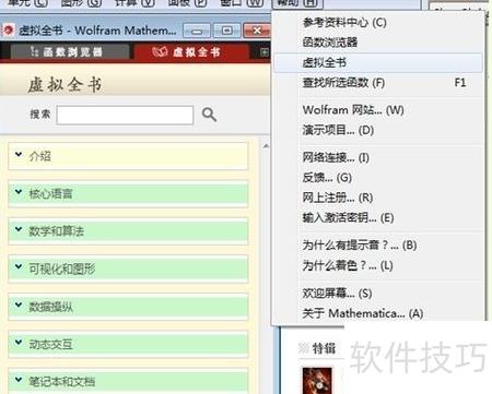3、 常有朋友询问学习Mathematica该用哪本书,依我个人经验,最有效的资源莫过于官方帮助文档和虚拟全书。打开方式很简单:点击菜单栏中的帮助,选择虚拟全书即可。这本电子手册内容全面、结构清晰,涵盖了从基础到高级的各类函数与实例,是掌握Mathematica最权威、最实用的学习资料,堪称首选教程。