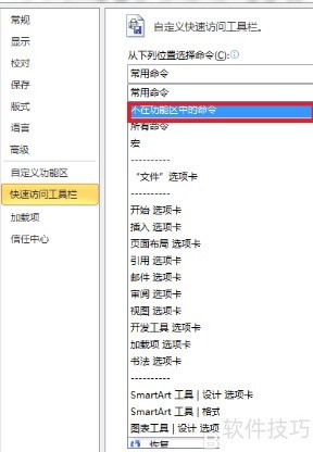 4、 在快速访问工具栏设置中选择所有命令选项。