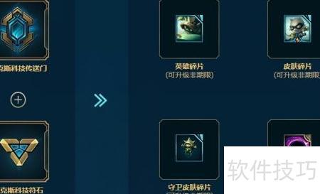 9、 一枚符石可开启传送门,获取随机奖励,包括英雄碎片、皮肤碎片、守卫皮肤碎片或召唤师图标之一,惊喜不断。