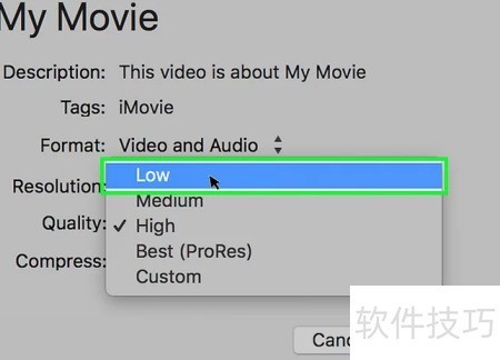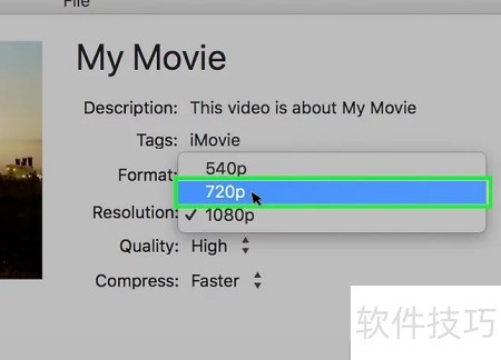 12、 在分辨率菜单中选择较低的选项,可缩小视频帧尺寸并减小文件体积。